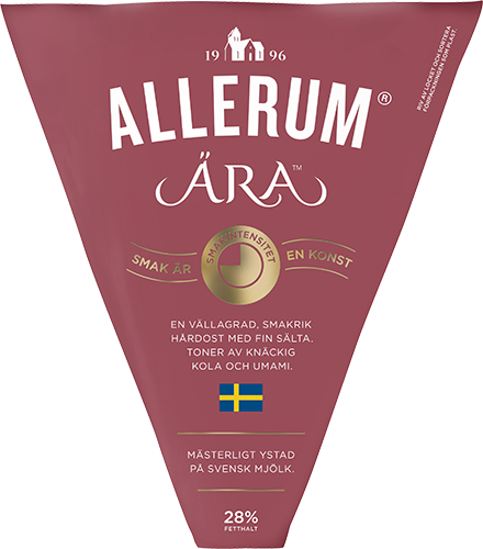 Allerum Ära® är en helt ny hårdost baserad på svenskt osthantverk med balanserad syrlighet, nötiga, knäckiga kolatoner och smak av rund umami med parmesantoner. Mästerligt ystad på svensk mjölk i Kristianstad. Att smak är en konst är något vi alltid skriver under på. För oss är ost ett ständigt skapande. Perfektion är vårt signum.