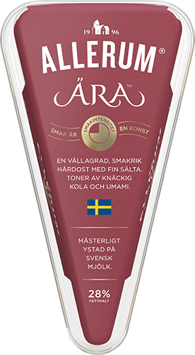 Allerum Ära® är en helt ny hårdost baserad på svenskt osthantverk med balanserad syrlighet, nötiga, knäckiga kolatoner och smak av rund umami med parmesantoner. Mästerligt ystad på svensk mjölk i Kristianstad. Den praktiska förpackningen är enkel och bekväm att använda och fungerar både som serveringsfat och som emballage tills ostbiten är slut. Kupan är snygg att ha framme på bordet och ser dessutom till så att osten håller sig saftig och fräsch. Att smak är en konst är något vi alltid skriver under på. För oss är ost ett ständigt skapande. Perfektion är vårt signum.