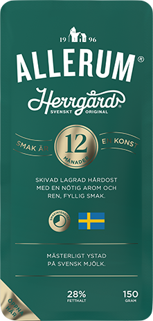 Allerum Herrgård® skivad hårdost 150g med 28% fetthalt har långlagrats i tolv månader, vilket gör den extra smakrik och fyllig. Den har en tydlig och balanserad karaktär och en lätt nötig smak. Mästerligt ystad på svensk mjölk i Kristianstad. Att smak är en konst är något vi alltid skriver under på. För oss är ost ett ständigt skapande. Perfektion är vårt signum.