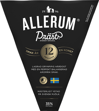 Allerum Präst® 35% 12 månader 670g är en lagrad grynpipig hårdost med en perfekt balanserad aromrik smak. Den är krämig och fyllig med en lång och tydlig eftersmak. Mästerligt ystad på svensk mjölk i Kristianstad. Passar utmärkt på frukostmackan, på ostbrickan, i matlagningen eller som en smakbit mellan målen. Att smak är en konst är något vi alltid skriver under på. För oss är ost ett ständigt skapande. Perfektion är vårt signum.