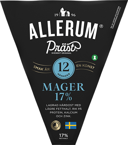 Allerum Präst® Mager 17% 12 månader 675g är en lagrad grynpipig hårdost med lägre fetthalt med en perfekt balanserad aromrik smak. Den är naturligt rik på protein, kalcium och zink. Mästerligt ystad på svensk mjölk i Kristianstad. Passar utmärkt på frukostmackan, på ostbrickan, i matlagningen eller som en smakbit mellan målen. Att smak är en konst är något vi alltid skriver under på. För oss är ost ett ständigt skapande. Perfektion är vårt signum.