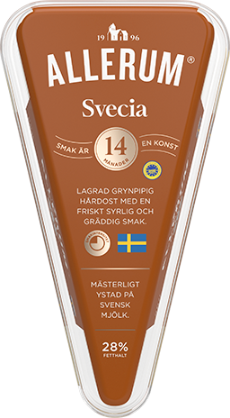 Allerum Svecia hårdost på kupa 400g med 28% fetthalt är långlagrad i 14 månader, vilket ger den en kraftfull smak. Konsistensen är fast och eftersmaken distinkt och tydlig. Skär en rejäl skiva till favoritbrödet eller riv över en god Pasta Bolognese. Mästerligt ystad på svensk mjölk i Kristianstad. Den praktiska förpackningen är enkel och bekväm att använda och fungerar både som serveringsfat och som emballage tills ostbiten är slut. Kupan är snygg att ha framme på bordet och ser dessutom till så att osten håller sig saftig och fräsch.Att smak är en konst är något vi alltid skriver under på. För oss är ost ett ständigt skapande. Perfektion är vårt signum.